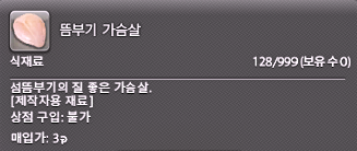 ※ < 레이크랜드 > 에 < 뜸부기 가슴살 > X 1개 버리기
