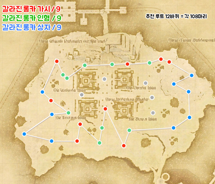 < ' 갈라진 롱카 가시 ' , ' 갈라진 롱카 인형 ' ,' 갈라진 롱카 상자 ' 각 100마리 사냥 >