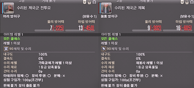 ※ 수리된 제국군 장비 재 습득처