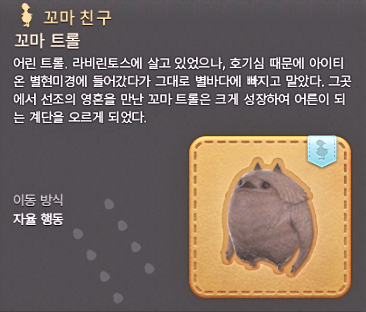 ※ 꼬마친구 ' 꼬마 트롤 '을 불러낸 상태로 지정지점 산책
