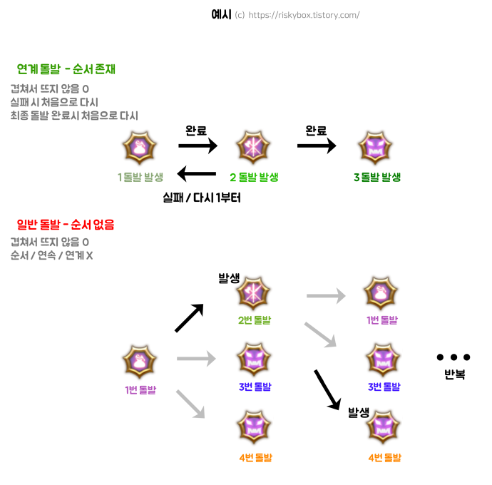 연계 돌발 : 1돌발을 선행으로 성공해야 2돌발이 발생