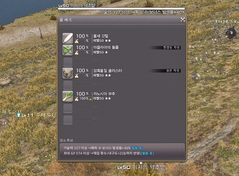 위 스킬 사용 시 채집 횟수 추가 발동